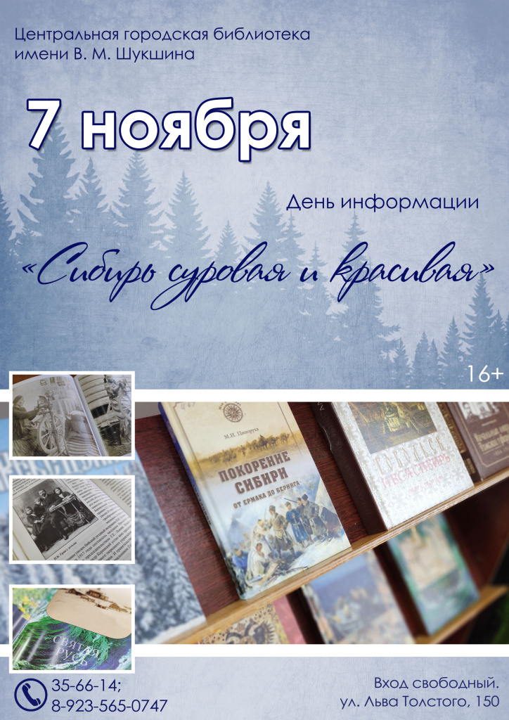 День информации «Сибирь – России светлый лик» (16+) (Библиотека№ 6, ул. Андреевская,79)