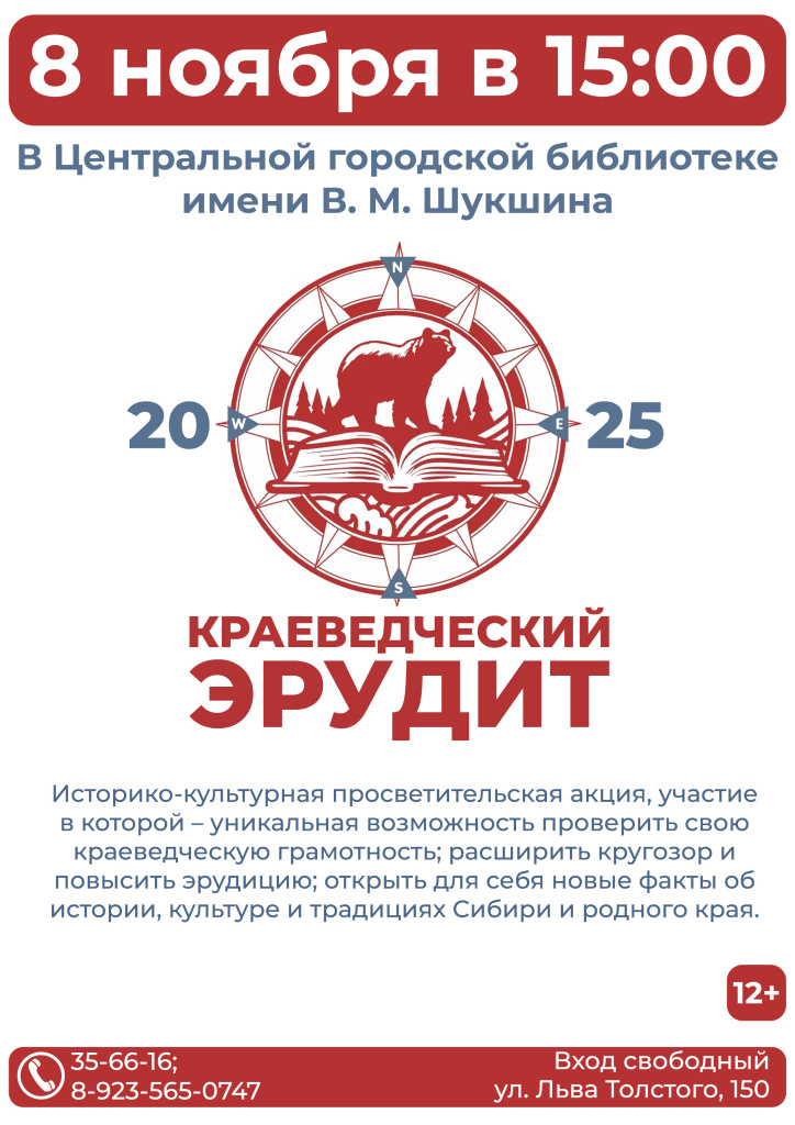 День Сибири «Наш край – Сибирь» (16+) (Центральная городская библиотека имени В. М. Шукшина, ул.Л.Толстого,150)