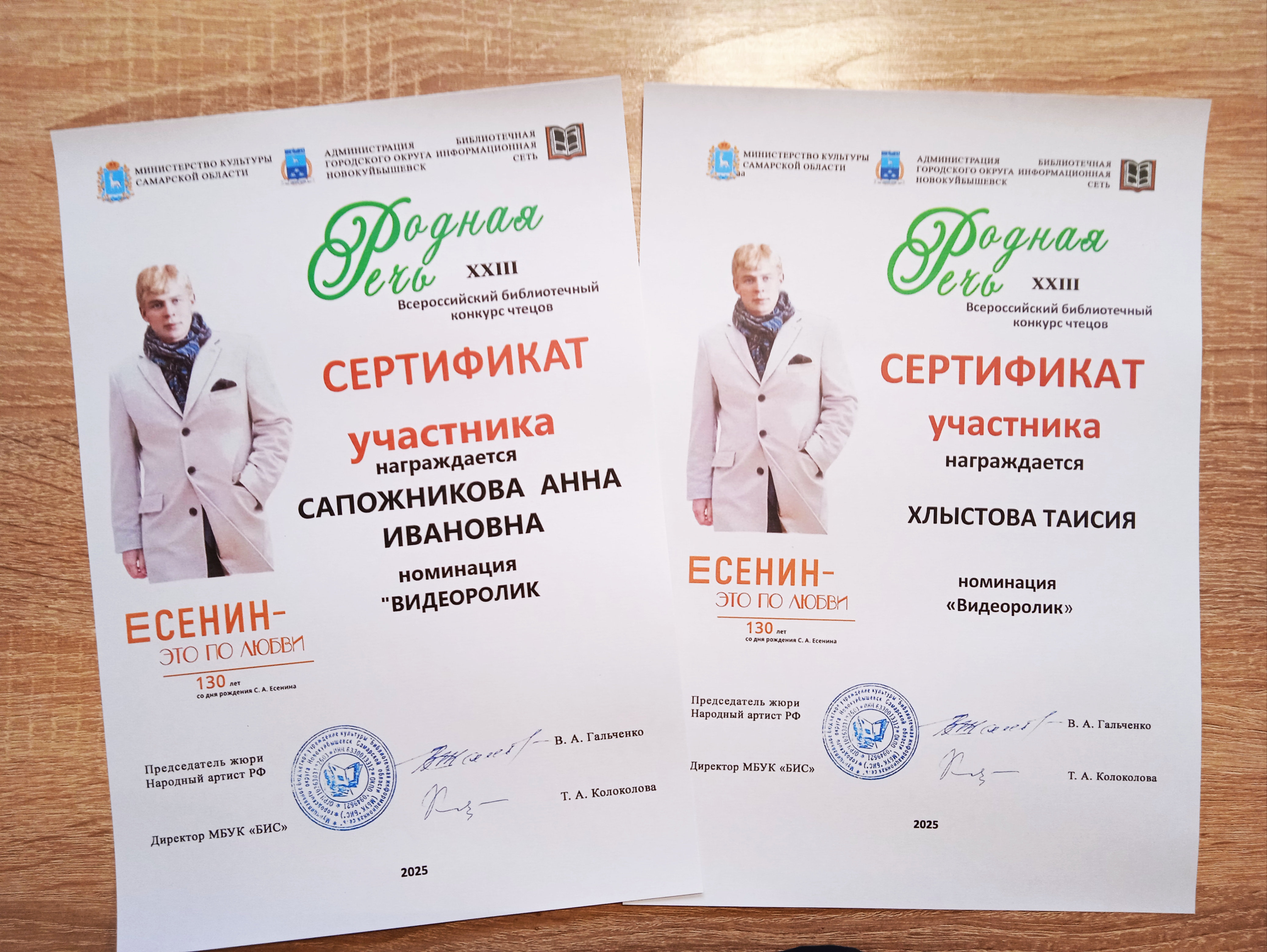 Читатели нашей библиотеки и воспитанники литературно-поэтического кружка "Непоседы" стали победителями XXIII Всероссийского библиотечного конкурса чтецов "Родная Речь". Тема - "Есенин - это по любви" (к 130-летию поэта).