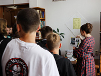 У нас в гостях были учащиеся школ №6 и №15, которым показали фильм о жизни и творчестве Льва Николаевича, после чего они сразились в квиз-игре «Яснополянский гений», где в «Литературном досье» искали цитаты, принадлежащие Толстому. В раунде «Разрушители мифов» угадывали какие события в жизни действительно происходили, а каких никогда не было. А в «Муралах с Толстым» знакомились с современным творческим движением, в котором на стену здания или сооружения наносят изображение. Знаете ли вы в каких городах есть граффити с Толстым? Наши юные участники теперь знают.