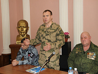 14 февраля в Центральной городской библиотеке имени В. М. Шукшина состоялась встреча студентов бийских колледжей с участниками вооруженных конфликтов, боевых действий и специальной военной операции.