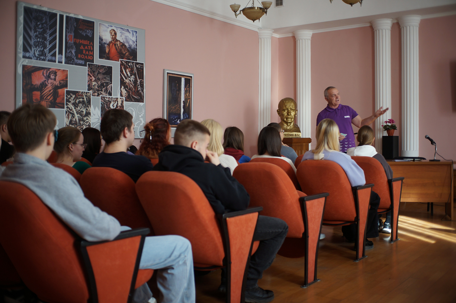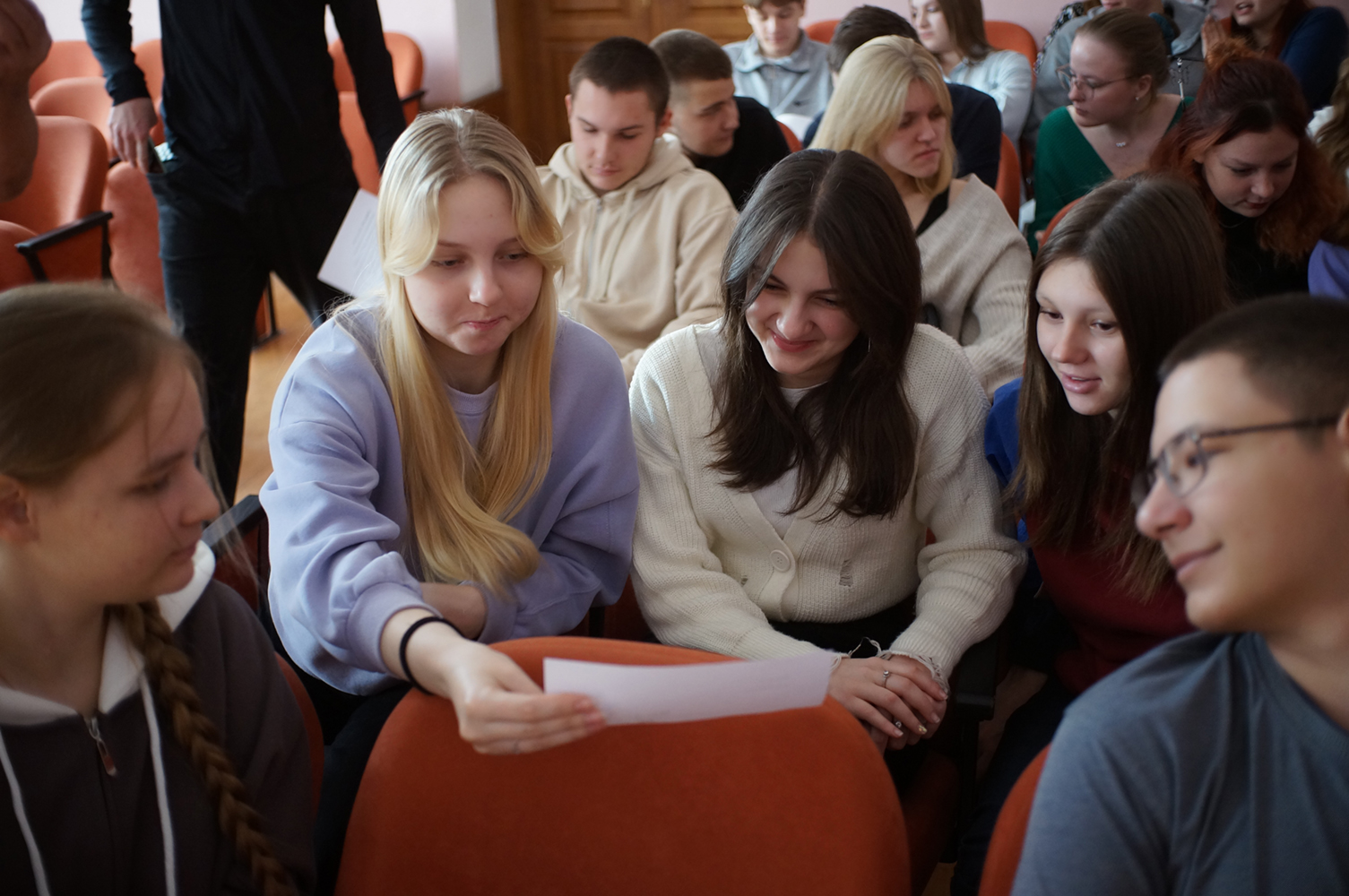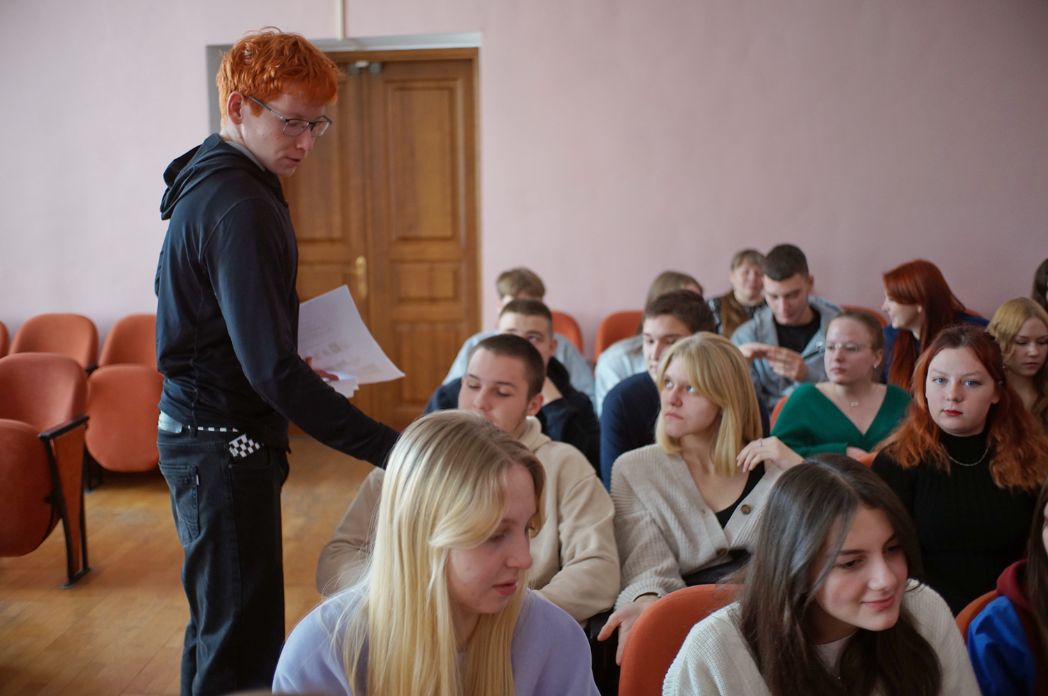 После теоретической части гости мероприятия перешли к практическому блоку. Представители отряда волонтёров финансовой грамотности «БиФинПлат» организовали для студентов увлекательный брейн‑ринг по налоговой грамотности.